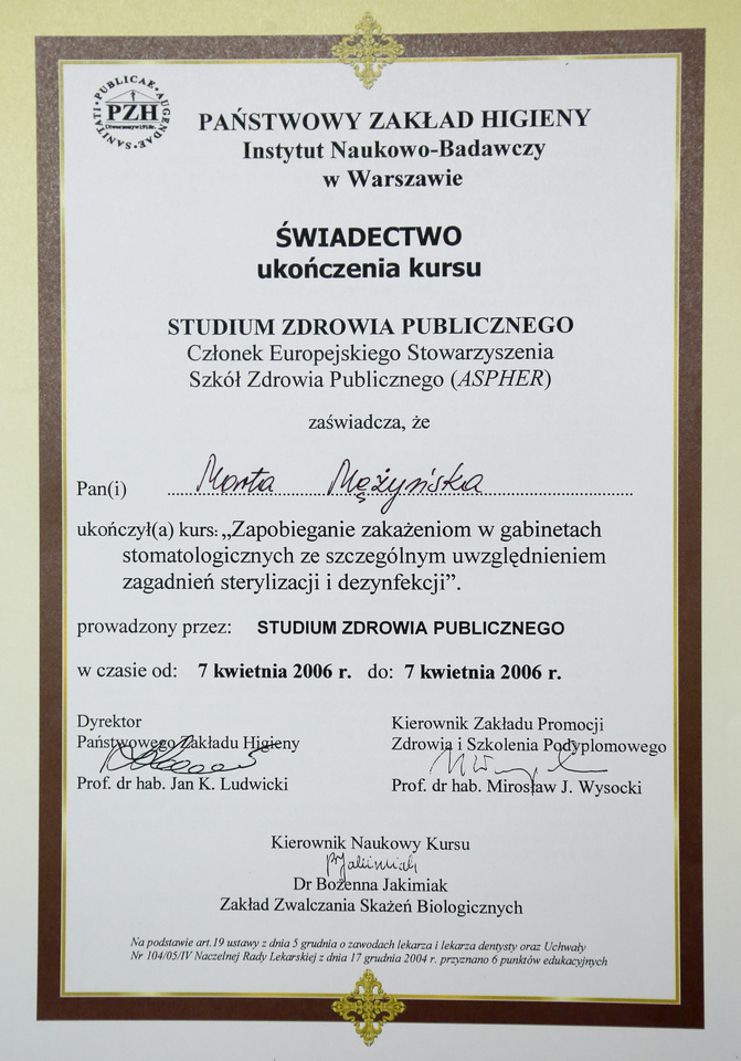 - czynna asysta we wszystkich typach zabiegów wykonywanych w gabinecie